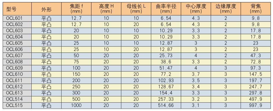 · 材料:精退火 K9 或者紫外熔石英 · 焦距误差:±2% · 设计波长:632.6nm · 中心厚度误差:±0.2mm · 透镜定心误差 :<3 分 · 直径误差 :+0.0/-0.2mm · 通光孔径 : > 90% · 不规则度 :<0.5 · 倒边:0.5mm×45°